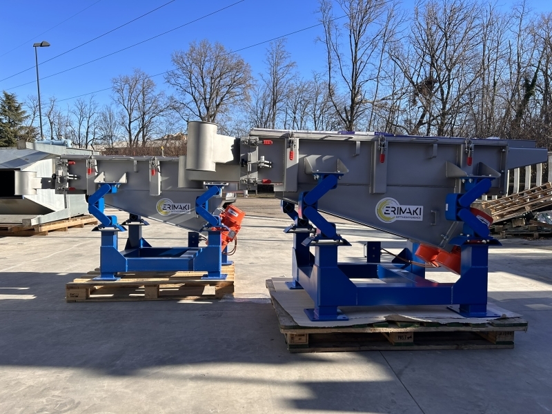 ERIMAKI projektuje i produkuje prostokątne przesiewacze wibracyjne oraz stoły wibracyjne, przeznaczone do przesiewania i transportu materiałów stałych i ciekłych. To rozwiązania dedykowane do procesów, w których oprócz separacji wymagane jest również przesuwanie materiału wzdłuż powierzchni sitowej lub roboczej.