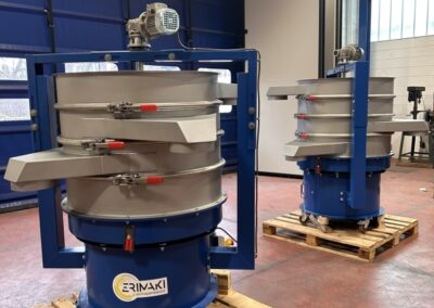 Przesiewacze wibracyjne ERIMAKI oferują wysoką skuteczność, łatwość obsługi i bardzo konkurencyjne koszty eksploatacji. Szeroka gama modeli (od Ø 400 do Ø 2200 mm) pozwala dopasować urządzenie do każdych wymagań procesowych.