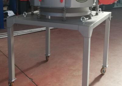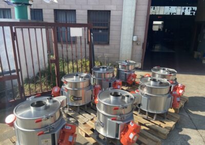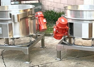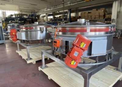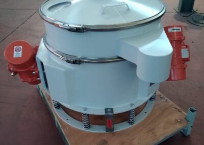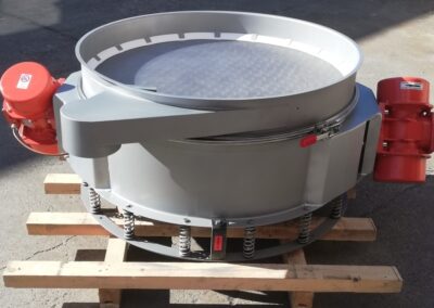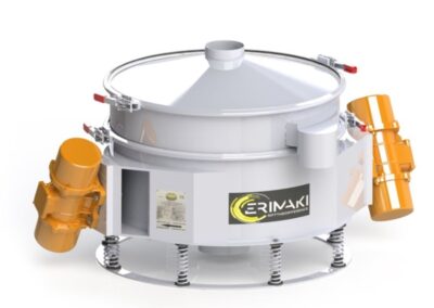 Przesiewacze wibracyjne z bezpośrednim wysypem i dwoma silnikami bocznymi zostały zaprojektowane do tzw. przesiewania kontroli „in-line”. Centralnie umieszczony podajnik i zsyp w dolnej części urządzenia zapewniają płynną integrację z linią produkcyjną, co umożliwia szybką i bezproblemową separację materiału bez przerw w procesie.